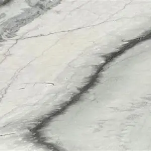 Marble is a metamorphic rock found in a range of natural colors and patterns, predominantly white with gray veining, which are popular for kitchen countertops. The variations in veining and coloration make each marble slab unique, contributing to its distinctive aesthetic.